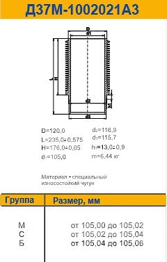 Диаметр, мм 105, Масса, кг 7,92. Производство «Мотордеталь»
